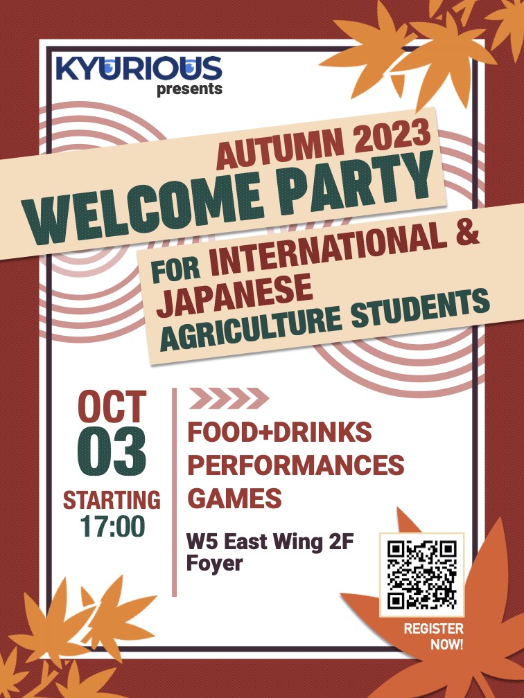 There will be food and drinks, fun performances, and games to interact with other participants. All students in the faculty of Agriculture (including Japanese students!) are welcome to join, so it will be a great opportunity to connect with new friends.