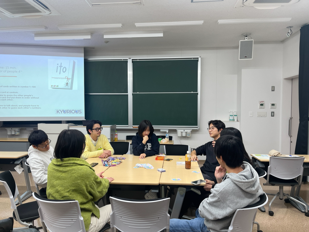 International students and Japanese students joined the event, and we all enjoyed playing board games together! We played Ito, Cockroach Poker, and 5 Seconds. We organize fun events every month to promote interactions between Japanese and international students. Additionally, we are very excited to host more board game events in the future.